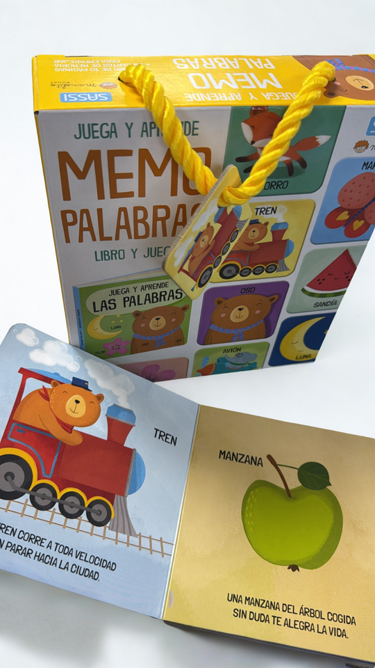 Juega y aprende las palabras Incluye un libro ilustrado y tarjetas de memoria para aprender vocabulario de forma divertida. Ideal para niños de 0+ años, fomenta la memoria, el lenguaje y la observación. Material resistente y colores llamativos perfectos para las primeras etapas del aprendizaje.