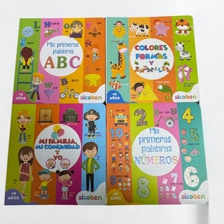 Bundle (4 libros) Incluye: ABC, Números, Colores y Formas, Mi Familia y Mi Comunidad. Ideal para niños de 0+ años, con ilustraciones coloridas y material resistente. Perfectos para estimular el lenguaje, los colores, las letras y los números desde temprana edad.